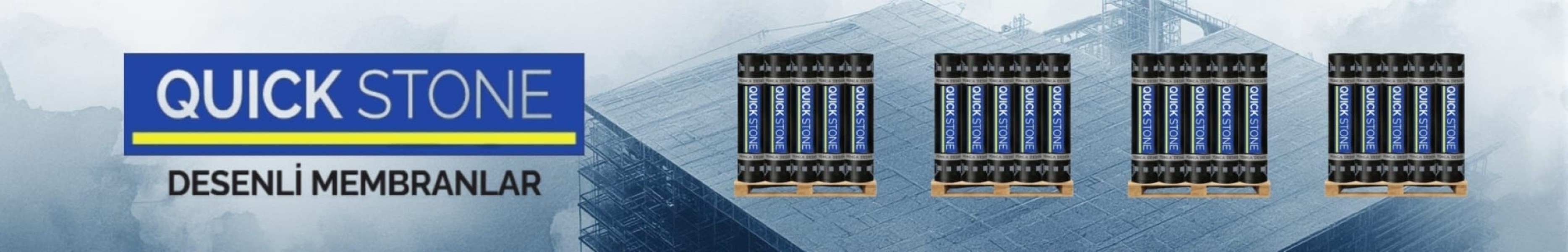 Quickstone desenli kumlu membran, arduaz desenli polimer bitüm yüzeyi sayesinde UV dayanımı yüksek, uzun ömürlü koruma sunan ve modern mimari ile uyumlu estetik görünüme sahip üst düzey bir su yalıtım çözümüdür.